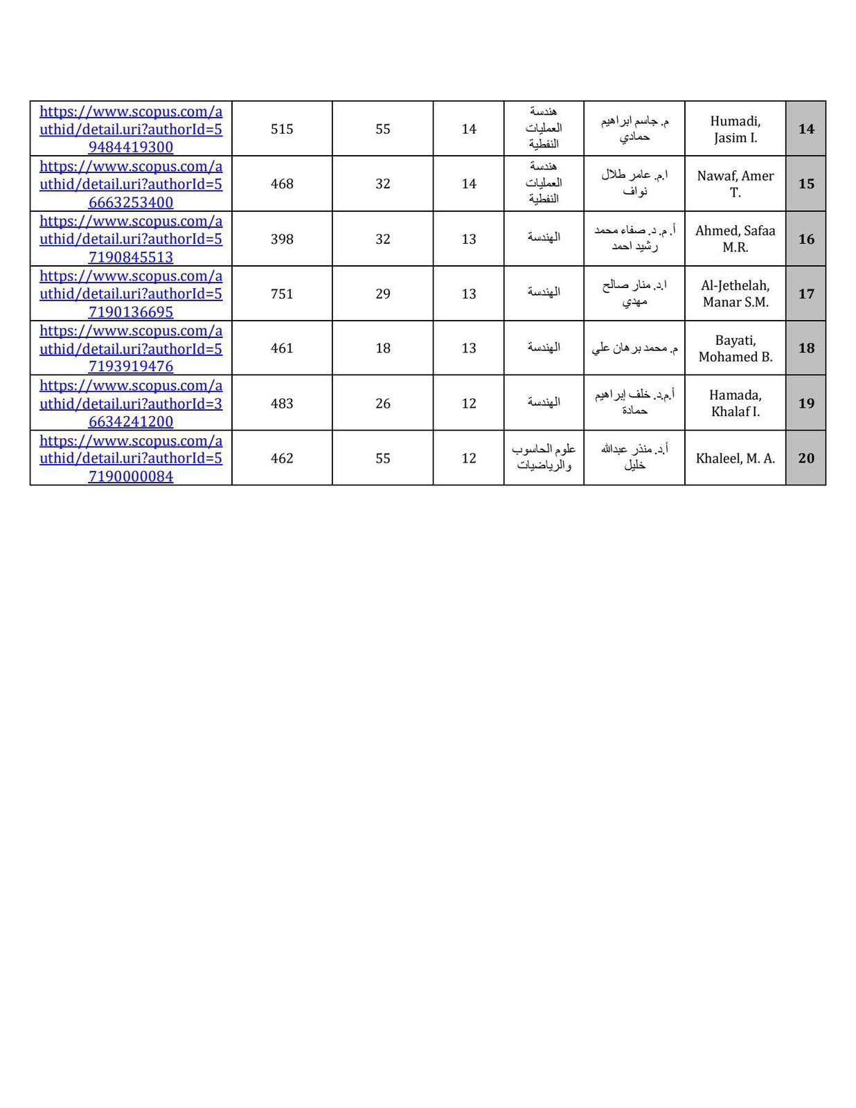 يُسعدنا أن نعلن عن إحصائية شهر تشرين الأول 2025 الخاصة بأعلى مؤشر H-index لباحثي جامعتنا في مستوعب Scopus، والتي تعكس جهود الباحثين المتميزة في مجال البحث العلمي والنشر الدولي